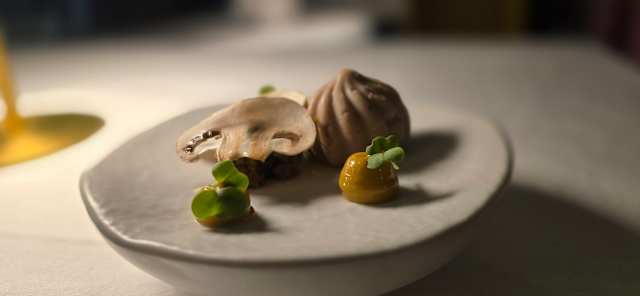 - Cannelloni de aipo, com coxas estufadas e frutos secos, marmelos, puré de kumquat com manjerona e jus de assado