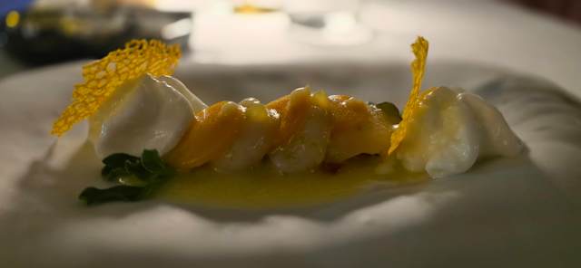 - Gnocchi de batata com tomate e azeitona, espargos verdes, bottarga, e braisage de limão